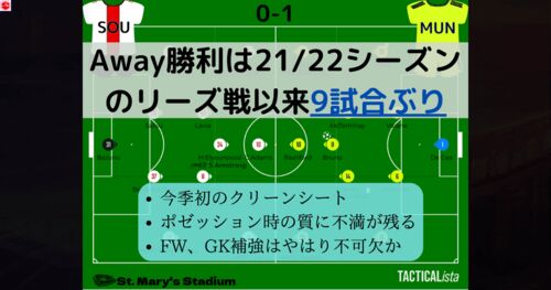 ※22/23 イングリッシュプレミアリーグ サウサンプトンvsマンチェスター・ユナイテッド戦の記事です。 辛勝という言葉が相応しいタフな試合でしたが、セント・メリーズでのサウサンプトンとのアウェイゲームを最少スコアで制したユナイテッドは2試合連続勝ち…